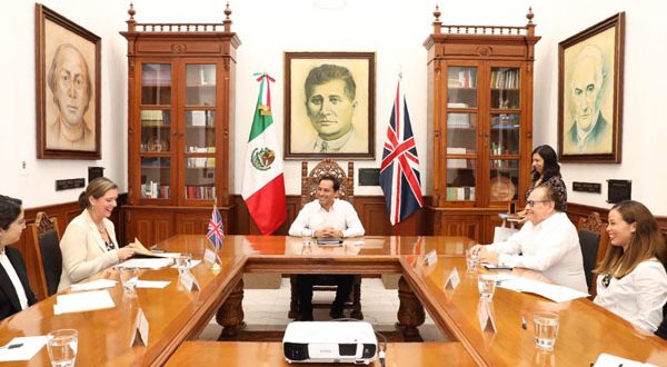 En el encuentro, en el que también estuvieron presentes como parte de la comitiva británica, Diana Ávalos, Oficial de Política de Cambio Climático y Movilidad de la Embajada de ese país en México y Graciela Peña, Cónsul del Reino Unido de la Gran Bretaña en Yucatán y Quintana Roo, se mencionó que anualmente llegan al sureste de México 450 mil ciudadanos británicos que visitan los 3 estados que integran la Península.