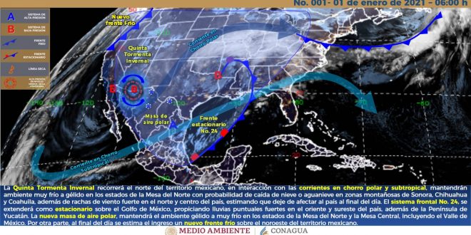 MÉRIDA, Yuc., 1 de enero 2021.- En las próximas 24 horas, se prevé cielo parcialmente nublado a medio nublado con probabilidad de intervalo de chubascos. Temperaturas cálidas a calurosas durante el día y templadas a cálidas al amanecer.