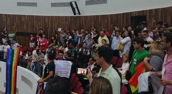 Al conocerse los resultados integrantes de la comunidad LGBT mostraron su rechazo ante tal decisión al grito de “cobardes”, “cobardes”, “cobardes” y otras expresiones.