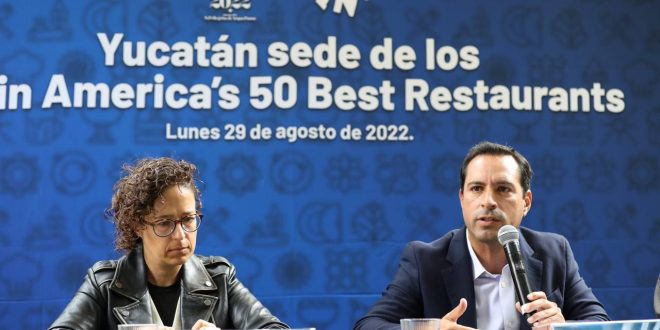 Ciudad de México, 29 de agosto de 2022.-Yucatán será reconocido como uno de los mejores destinos gastronómicos a nivel internacional y a través de su comida mostrará sus bondades para atraer mayor turismo que genere más y mejores empleos para las familias e ingresos para restaurantes, productores de comunidades, artesanos y proveedores del sector al albergar en noviembre próximo la décima edición del programa de premios culinarios más prestigioso de América Latina, los Latin America’s 50 Best Restaurants, que este día presentó el Gobernador Mauricio Vila Dosal.