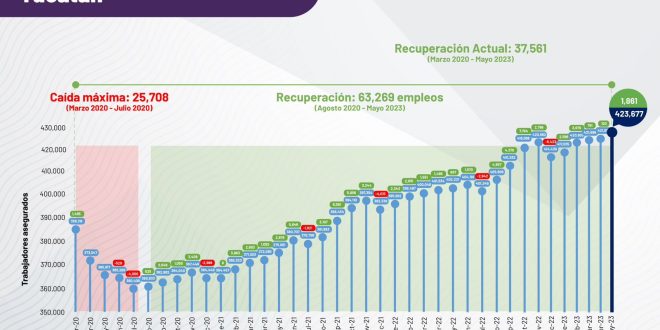 El IMSS afirmó que, durante la actual administración, se ha generado 54,137 empleos, cifra superior al promedio nacional, de 52,186, es decir, 967 mensuales, convirtiendo a Yucatán en una de las entidades del país que más ha logrado.