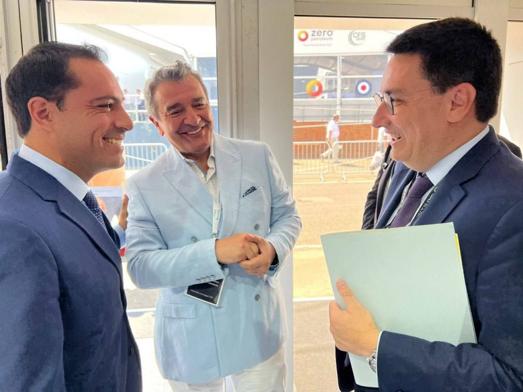 Farnborough, Reino Unido, 19 de julio de 2022.- En el segundo día de actividades la Feria Aeronáutica Internacional de Farnborough, en Reino Unido, el Gobernador Mauricio Vila Dosal sostuvo encuentros con directivos de la empresa Safran, empresa especializada en defensa, equipamiento aeronáutico y de seguridad, para presentar a Yucatán como una opción certera de inversión por sus múltiples ventajas, como la seguridad, calidad de vida y la preparación de los profesionistas en este sector, lo que contribuye a generar más y mejores empleos para los yucatecos.