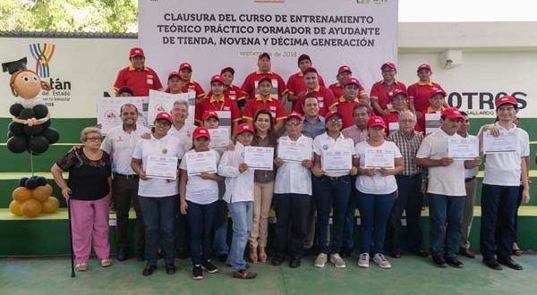 Orgullosos y mostrando que no existen límites cuando se quiere aprender y superarse, este día se graduó la novena y décima generación del Curso de Entrenamiento Teórico Práctico Formador de Ayudante de Tienda, quienes recibieron sus diplomas de manos de la Presidenta del Sistema para el Desarrollo Integral de la Familia (DIF) Yucatán, Sarita Blancarte Canto.