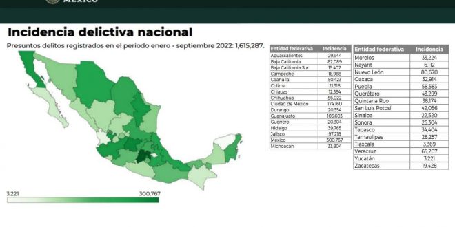 De enero a septiembre, el estado registró una tasa de 139.54 delitos por cada 100 mil habitantes, cifra que es ocho veces menor a la obtenida a nivel nacional.