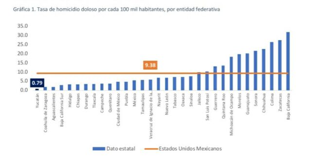 En dicho reporte donde se presentan datos al mes de mayo de este año, se informó que Yucatán es la entidad con la menor tasa de homicidios a nivel nacional, ya que registró un total de 0.79 homicidios por cada 100 mil habitantes, cifra 12 veces menor a la tasa nacional de 9.38.