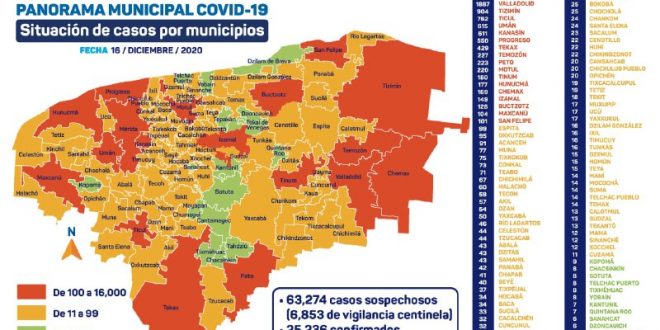 Mérida, Yucatán, 16 de diciembre de 2020.- Este es el parte médico de este miércoles 16 de diciembre: Como hemos señalado, en la reapertura económica los datos más importantes son la ocupación hospitalaria y los ingresos diarios. El día de hoy tenemos 153 pacientes en hospitales públicos. 21,696 pacientes ya se recuperaron: no presentan síntomas ni pueden contagiar. Esta cifra representa el 85% del total de contagios registrados, que son 25,236. Hoy se detectaron 97 nuevos contagios de Coronavirus.