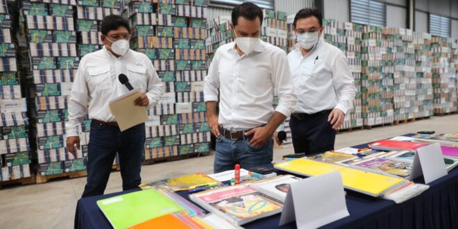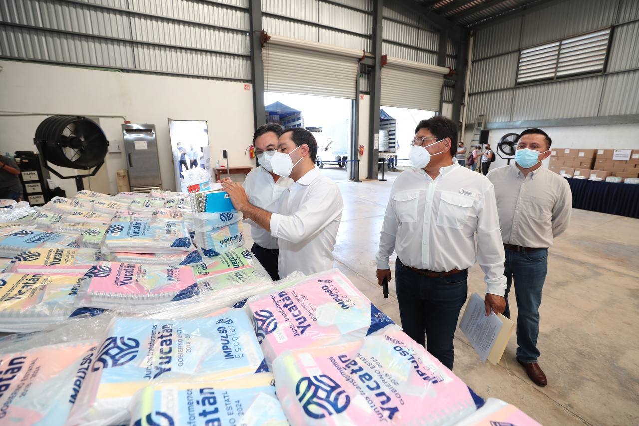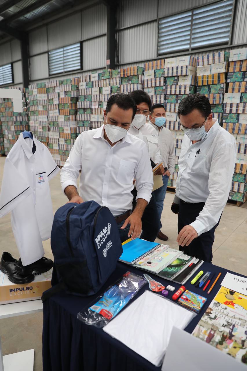 El Gobernador Mauricio Vila Dosal puso en marcha la entrega de dichos paquetes de útiles escolares y constató el proceso de armado de los kits de libros de texto gratuitos, los cuales se complementarán con 210,000 paquetes de uniformes para alumnos de primaria de escuelas públicas, conformados por 2 camisas, un par de zapatos y una mochila, para seguir respaldando la economía de las familias yucatecas ante el complicado escenario por la pandemia del Coronavirus.