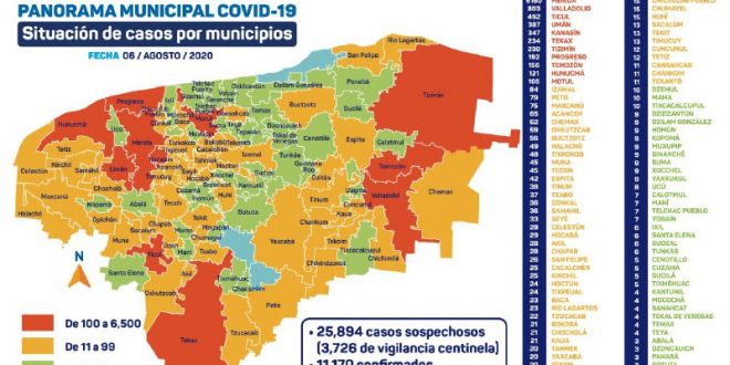 Específicamente, en Mérida se han diagnosticado 6,052 personas contagiadas de Coronavirus (casos acumulados al 5 de agosto de julio), que viven en: