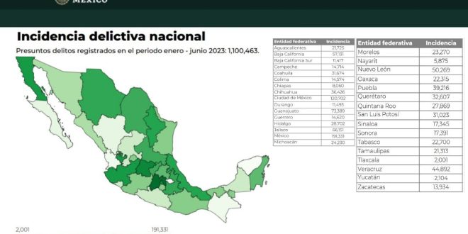 Mérida, Yucatán, 24 de julio de 2023.- Yucatán se posicionó en el primer lugar con menor incidencia delictiva a nivel nacional, con lo que se reitera como la entidad más segura al registrar una tasa de 90.21 delitos por cada 100 mil habitantes, cifra más de nueve veces menor a la registrada a nivel nacional que es de 838.57 delitos por cada 100 mil habitantes, datos que reflejan el impulso del Gobernador Mauricio Vila Dosal para prevalecer el clima de paz y tranquilidad en el territorio.