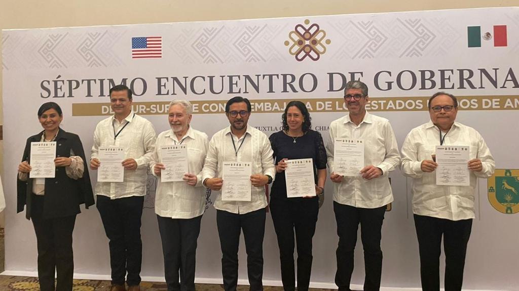 Tuxtla Gutiérrez, Chiapas, 19 de abril de 2023.- Yucatán es uno de los siete estados que firmaron la carta de intención con Amazon México para continuar impulsando la digitalización de las micro, pequeñas y medianas empresas (Mipymes) y artesanos, así como la promoción y comercialización de sus productos a través de dicha plataforma digital, esto en el marco del Séptimo Encuentro de Gobernadores del Sur-Sureste de México.