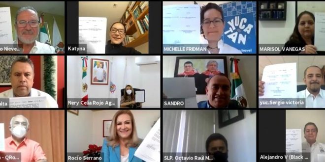 Mérida, Yucatán, 16 de diciembre de 2020.- A fin de impulsar a Yucatán y a los demás estados de la Región Mundo Maya, que son Chiapas, Tabasco, Campeche y Quintana Roo, por instrucción del Gobernador Mauricio Vila Dosal, la Secretaría de Fomento Turístico (Sefotur) participó en la firma de convenio de fortalecimiento e innovación, que se reflejará en un aumento en el arribo de visitantes y una mejora económica en la zona.