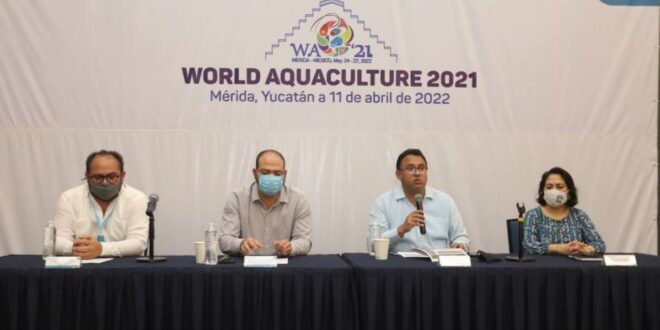 Mérida, Yucatán, 11 de abril de 2022.- Una vez más, Yucatán se coloca ante los ojos del mundo al ser sede del encuentro de la Sociedad Mundial de Acuacultura 2022, el Congreso más importante a nivel mundial en esa materia y por lo que se convertirá en la Capital del Mundo de la Acuacultura del 24 al 27 de mayo y atraerá a más de 2,500 expertos e inversionistas de diferentes partes del mundo a la entidad y abonará a la reactivación económica local.