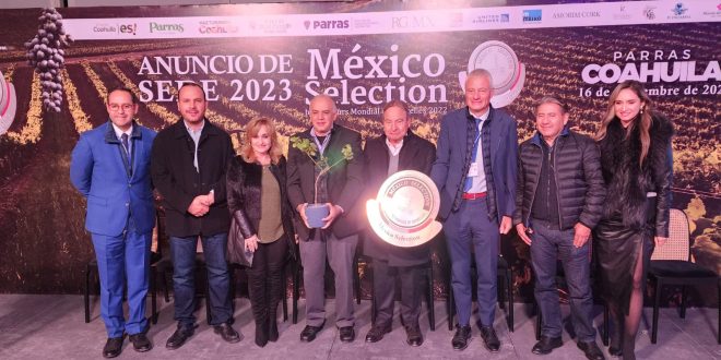 Parras, Coahuila, 17 de noviembre de 2022. Ayer por la noche, en la Ceremonia Oficial de Anuncio de Sede 2023 del México Selection by Concours Mondial de Bruxelles (Concurso Mundial de Bruselas), se entregó la pequeña planta de Vid, como estafeta para confirmar que este encuentro tendrá como anfitrión a Yucatán el próximo año, siendo esta, la primera vez se elige un destino que no es productor de vinos para su celebración, lo que destaca la relevancia gastronómica y la propuesta culinaria que Yucatán ofrece.