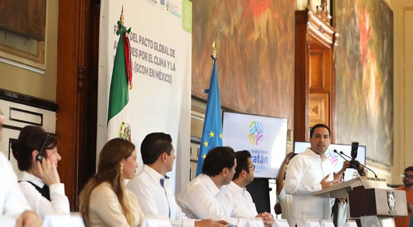 Durante la firma del Pacto Global de Alcaldes por el Clima y la Energía (GCoM, por sus siglas en inglés), el Gobernador Mauricio Vila Dosal convocó a las autoridades municipales de la entidad a sumarse y aprovechar los beneficios de los proyectos de cooperación internacional en materia de medio ambiente, “porque como gobernantes no podemos estar pensando en la próxima elección, sino en la siguiente generación”.