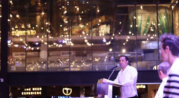 Acompañado del propietario de este novedoso complejo, José Chapur Zahoul, y del dueño de la plaza que éste alberga, Víctor Manuel Abraham Palomo, el mandatario recordó que, no obstante la bonanza de la capital, en el interior del estado el 60 % de la población vive en pobreza, por lo que destacó la importancia de asegurar la alimentación, generar condiciones de vivienda y garantizar que la gente pueda obtener un empleo digno, bien remunerado y con seguridad social en todos los puntos de la entidad.