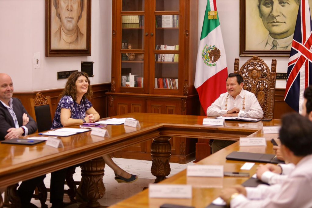 En Palacio de Gobierno, Díaz Mena destacó que Yucatán es un destino seguro “y seguiremos colaborando estrechamente con la Embajada Británica para que cada ciudadano británico se sienta bienvenido y seguro”.
