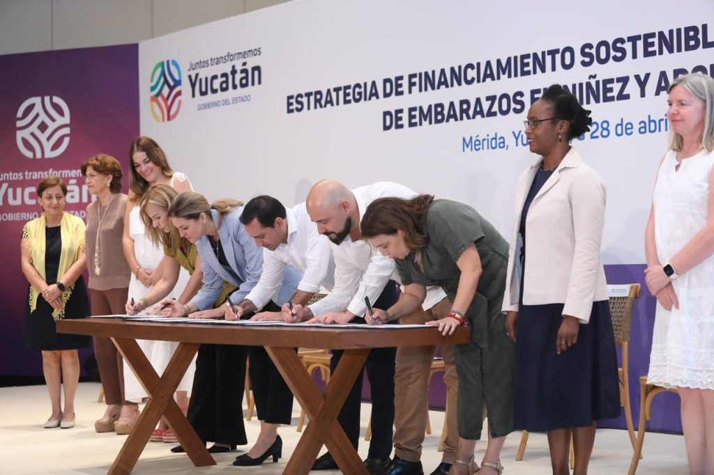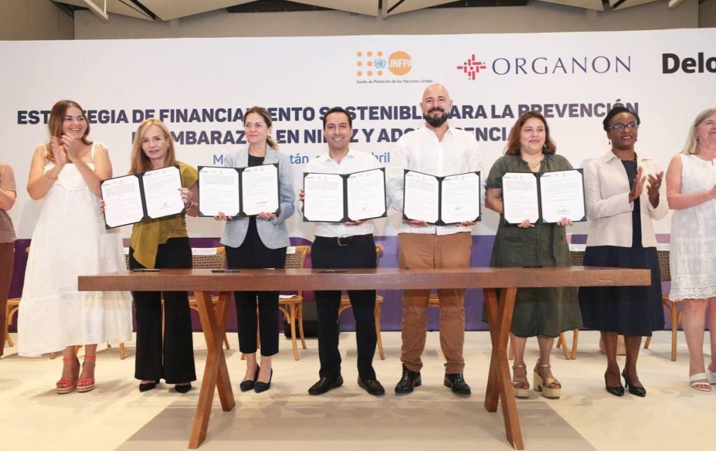 Mérida, Yucatán, 28 de abril de 2023.- El Gobierno de Mauricio Vila Dosal suma esfuerzos con la farmacéutica Organon, la consultora Deloitte y el Fondo de Población de las Naciones Unidas (UNFPA), para implementar, mediante un esquema de inversión sostenible, estrategias innovadoras encaminadas hacia la prevención del embarazo en la niñez y adolescencia, misma que, al 2025, impactará en 25 municipios prioritarios, con lo que Yucatán se vuelve entidad única y pionera en todo el país.
