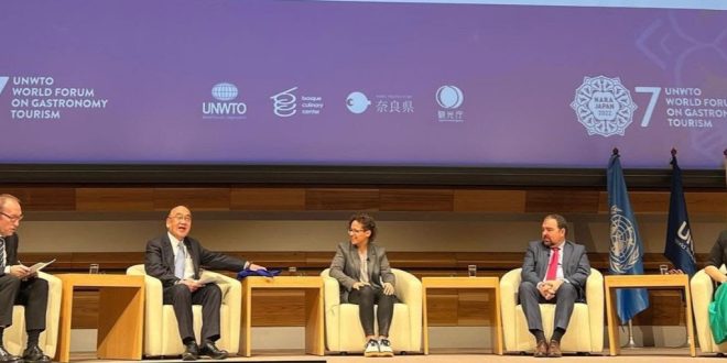 Mérida, Yucatán a 14 de diciembre de 2022.- Bajo el lema “Turismo Gastronómico para las Personas y el Planeta: Innovar, Empoderar y Preservar”, se llevó a cabo el 7º Foro Mundial de la OMT sobre Turismo Gastronómico del 12 al 15 de diciembre del presente en Nara (Japón); y en la que, la titular de la Secretaría de Fomento Turístico de Yucatán (Sefotur) Michelle Fridman, en representación del Gobernador Mauricio Vila Dosal, tuvo una destacada participación en el panel Get Inspired!, en la que se expusieron las iniciativas exitosas en el turismo gastronómico.
