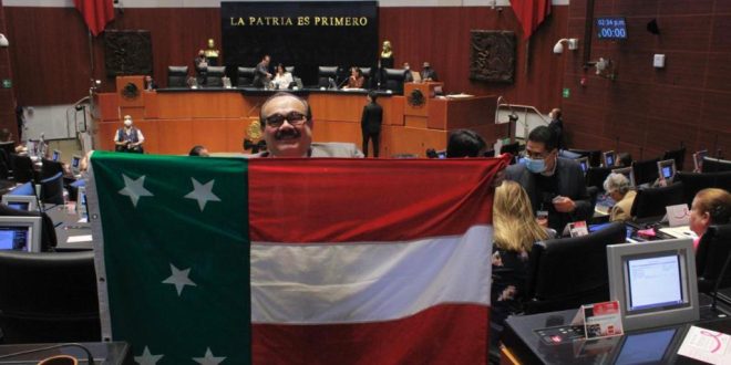 Con bandera en mano, desde el Senado de la República, el legislador señaló en ese momento que, tras este símbolo, se encuentra plasmada su historia, detrás de las franjas rojas y blanca, del color verde y sus estrellas, hay cultura, tradición y símbolo de resistencia.