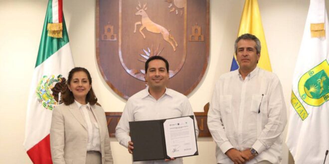 -Los Gobernadores de Yucatán, Mauricio Vila Dosal, y Antioquía, Aníbal Gaviria Correa, realizaron una firma de hermanamiento para puntualizar frentes de trabajo común.