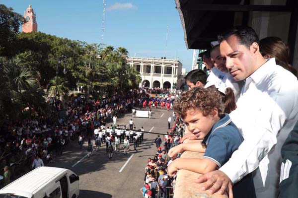 Miles de familias yucatecas salieron a las principales calles de esta ciudad para disfrutar del colorido y la marcialidad del desfile cívico-deportivo con motivo del 108 aniversario del inicio de la Revolución Social Mexicana, que por vez primera encabezó el Gobernador Mauricio Vila Dosal.