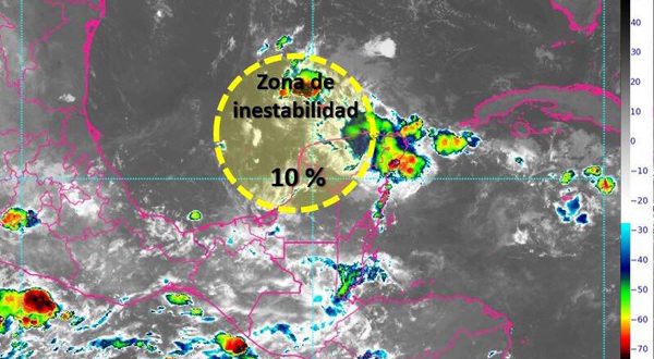 Zona de inestabilidad mantiene esta mañana baja su posibilidad de desarrollo ciclónico